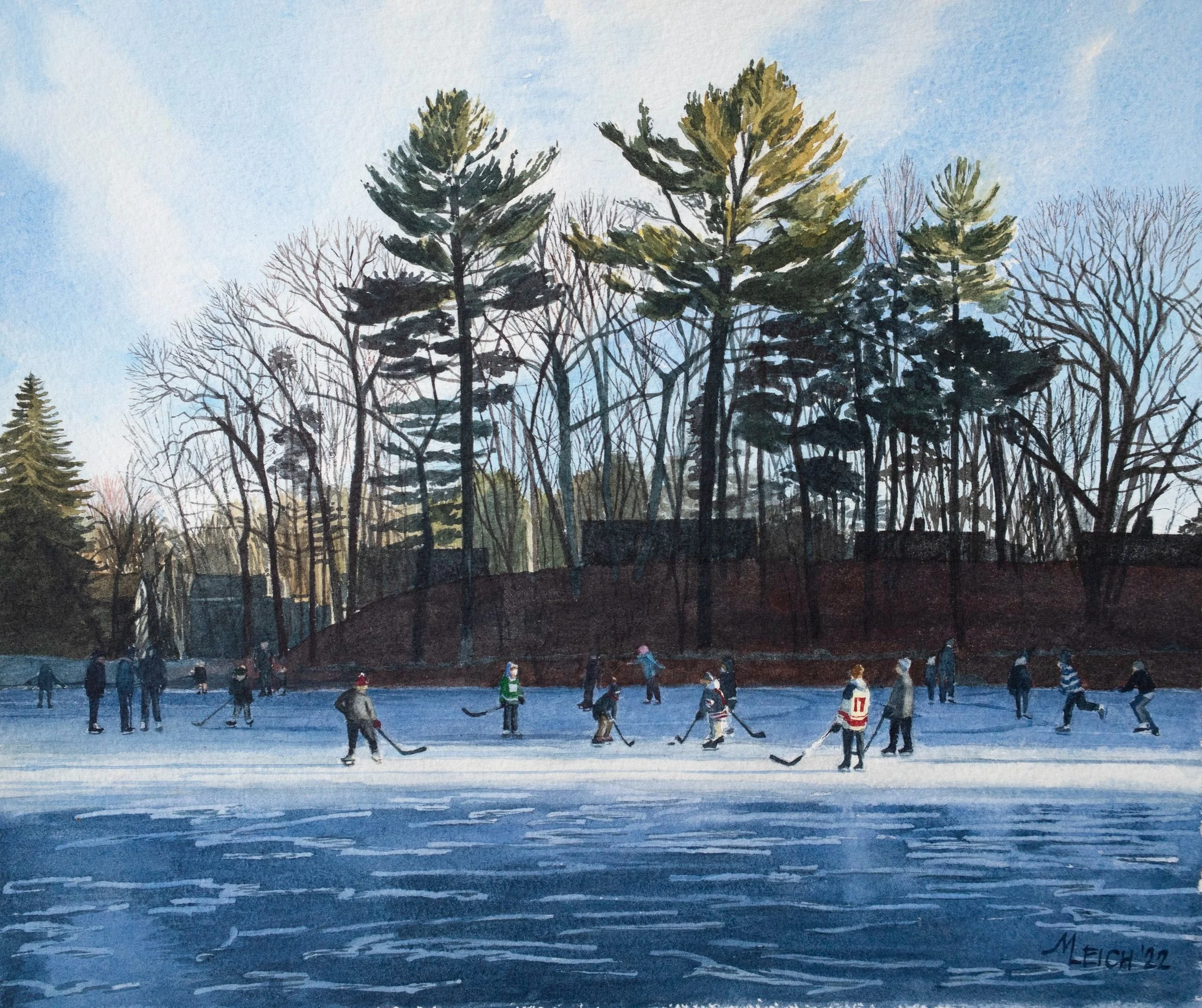 <i>Menotomy Rocks Skaters</i>, 10 x 12", watercolor on paper, 2022 (Copy)